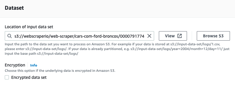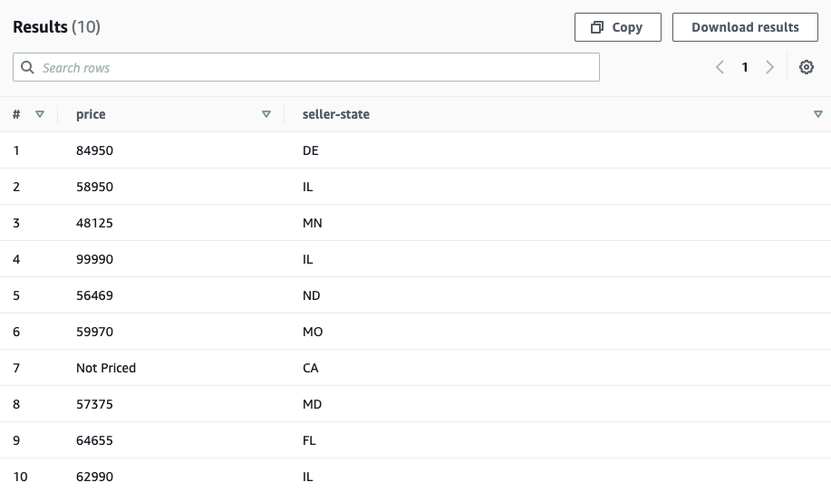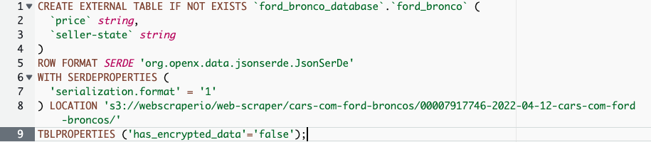 The dataset we’ll analyse in this article is pricing information for Ford Broncos within the United States from Cars.com. To show the value behind using Athena and Web Scraper Cloud together, we’re going to perform a basic query and calculation to determine which state has the lowest prices for Ford Broncos. Keep in mind that most of this material can technically apply to other data sets or other insights you’re trying to uncover. The idea is to learn this process and use it as a framework for future Athena queries.